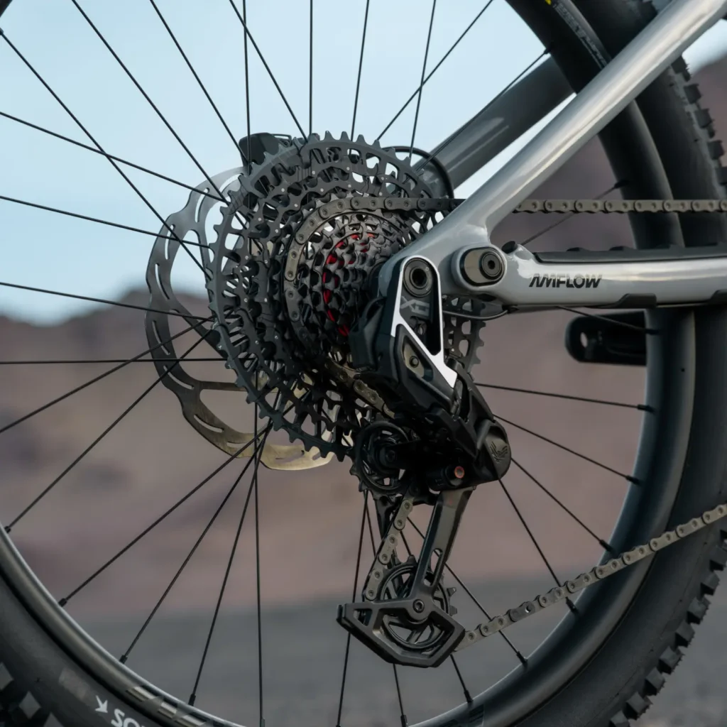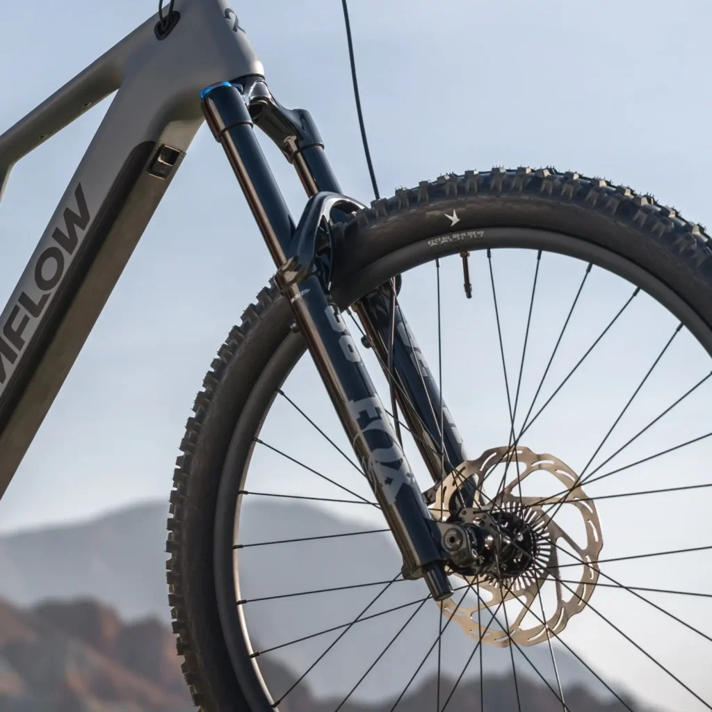 - Componentes: Viene lista para los senderos técnicos con configuración mullet (29″ adelante, 27.5″ atrás), suspensión FOX, frenos Magura Gustav Pro (rotores de 203mm) y llantas Schwalbe Radial.